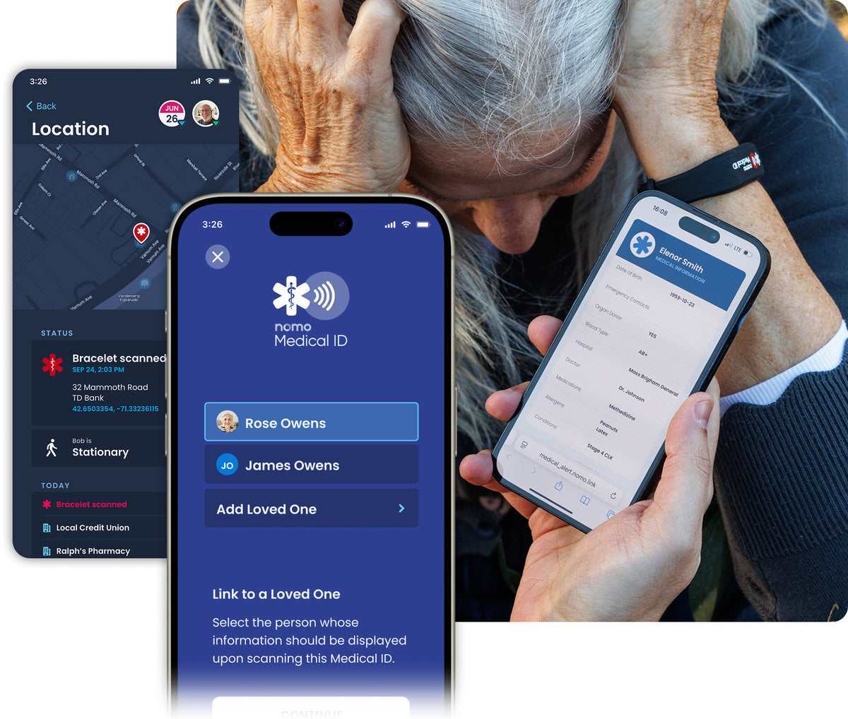 When every second matters, immediate clarity can make all the difference. A scan of the Nomo Smart Care Medical ID bracelet provides responders with essential medical information and alerts the Care Circle with the exact location. It’s dependable support that travels with them.